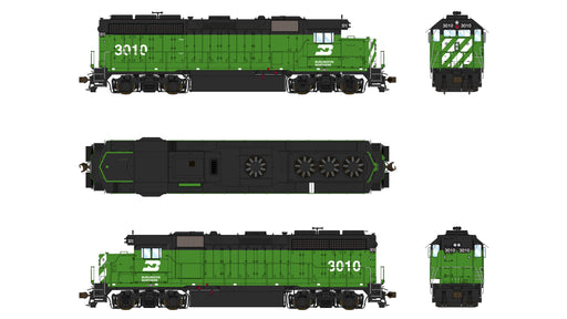 Burlington Northern 3010 Specific Features: LED-Illuminated Low, Nose Mounted Headlight LED-Illuminated Cab Mounted Pyle Gyralight, With White ...