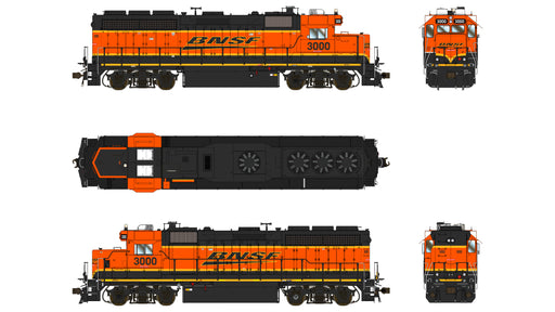 BNSF 3001 Specific Features: Low Clearance Pilot Step Wells GP40-2R Lettering LED-Illuminated High, Cab Mounted Headlight “Firecracker” Ant...
